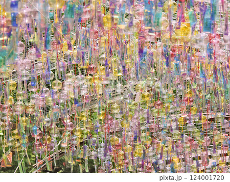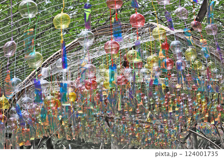夏の風物詩ガラスの風鈴がたくさんつるされた光景