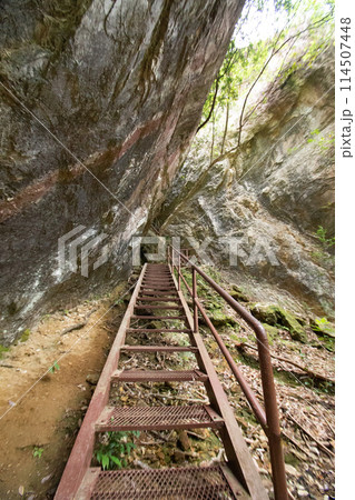乳岩峡(愛知県新城市) 登山道に設置された鉄のハシゴ(階段)