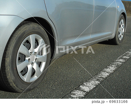停車中の自動車のタイヤ部分