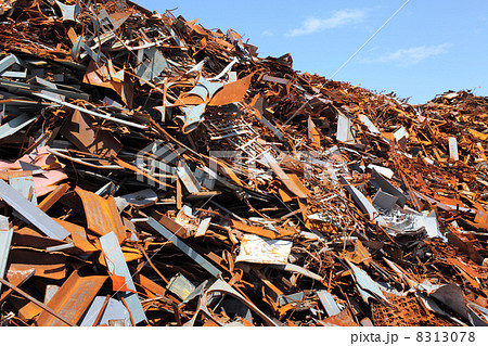 積み上げられた金属類の産業廃棄物