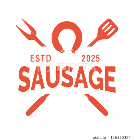 Sausage logo design template. Butchery sausages logotype for food market, ecommerce, organic products promotion. Vector illustration.