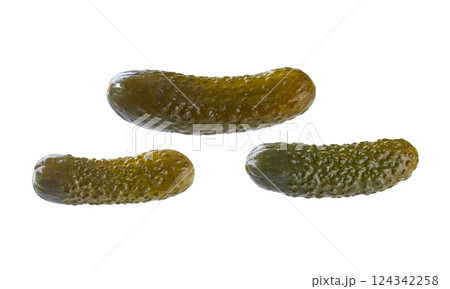three pickled cucumbers isolated on a white background.