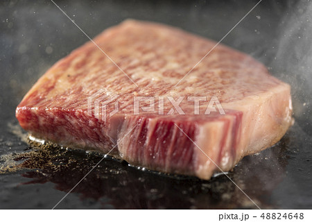 国産黒毛和牛ヒレステーキ鉄板焼断面湯気