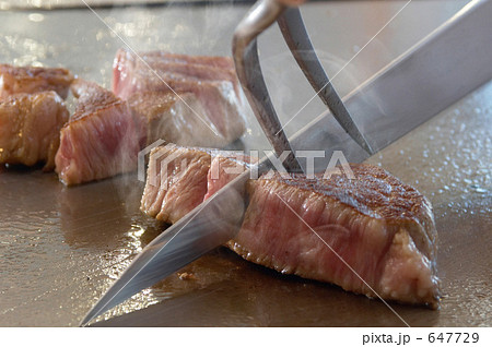 鉄板焼 鉄板焼き 切る カット 調理中 肉 和牛 01