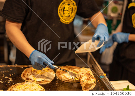 台灣蔥油餅攤位. 傳統小吃現煎美味
