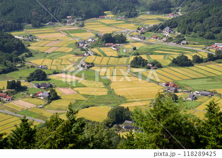 黄金色の棚田 高台から見下ろした比和三河内の棚田