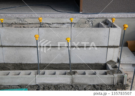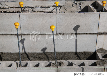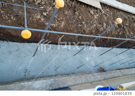 鉄筋コンクリート布基礎 基礎工事 建築現場 鉄筋先端の保護キャップ