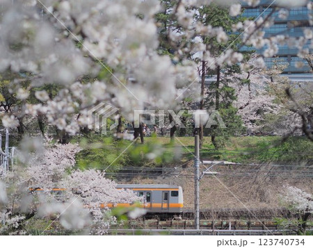 桜と中央線(飯田橋・市ヶ谷付近のお堀)