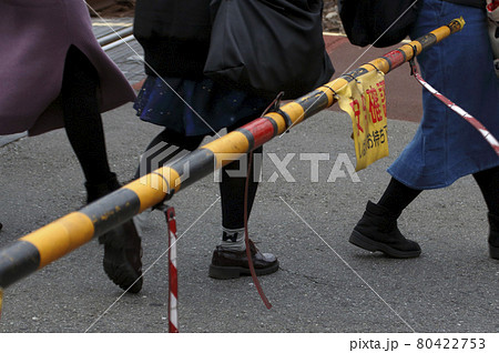 踏切遮断機を無視して渡る危険行為(東京都内)