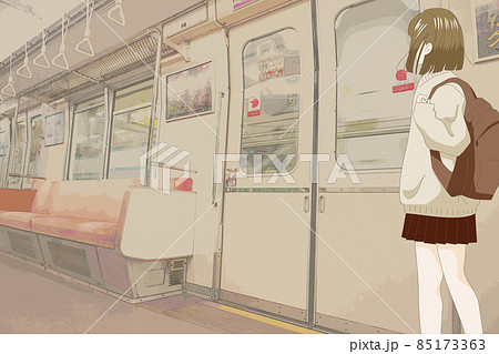 電車に乗っている女子高生 撮影協力「京王電鉄株式会社」