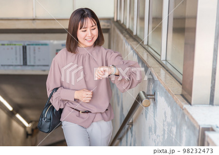 地下鉄から電車通勤するビジネスウーマン・大学生の女性