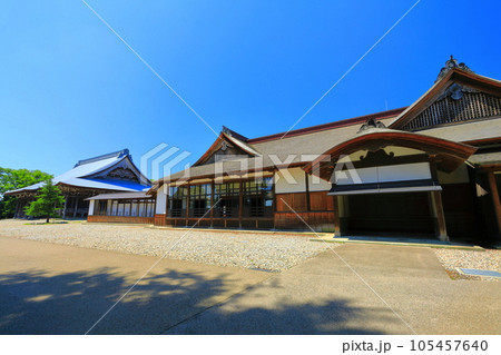 【富山県】快晴の勝興寺の大広間及び式台の中庭