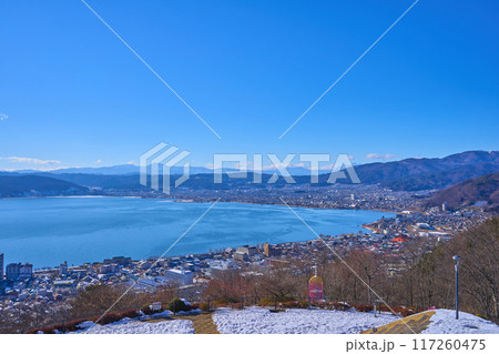 冬の長野県諏訪市 立石公園から西側の眺望(諏訪湖,諏訪市,下諏訪町など)