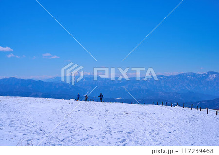 冬の長野県 車山山頂から西側の眺望(鉢盛山,乗鞍岳,高ボッチ山など)
