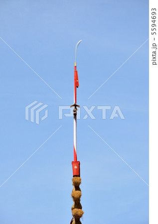 祇園祭山鉾建て 長刀鉾 鉾頭の長刀 2022年