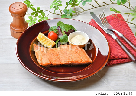 ビタミンD含有食材、銀鮭(銀ざけ、サーモン)のムニエル(ソテー)、マヨネーズ添え。