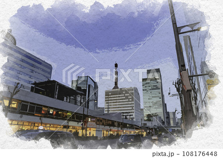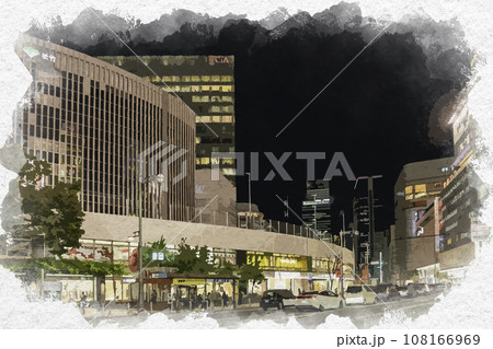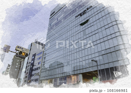 水彩画風 有楽町 東京交通会館と銀座インズ 東京都千代田区