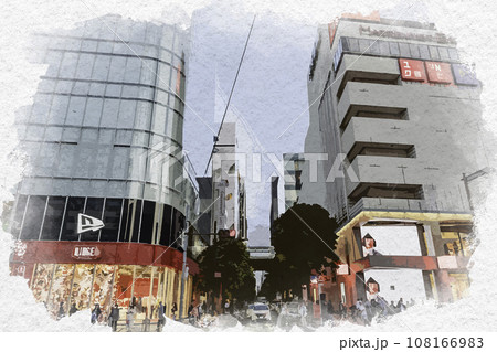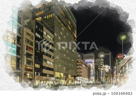 水彩画風 銀座 銀座西二丁目交差点 東京都中央区
