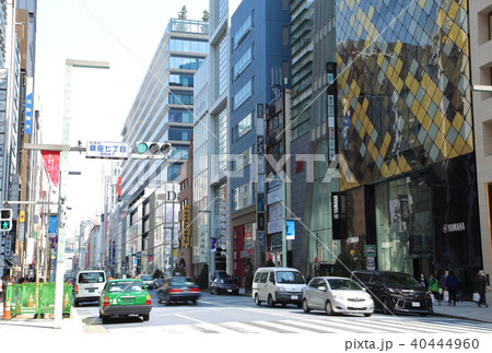 日本の東京都市景観 東京・銀座。「銀座六丁目」から「銀座七丁目」方向を望む