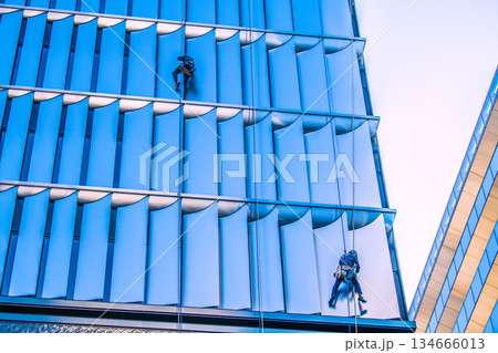 日本の東京都市景観年の瀬の銀座に…“忍者”出現!。ビルの窓ガラスの清掃…年末大掃除…=23日