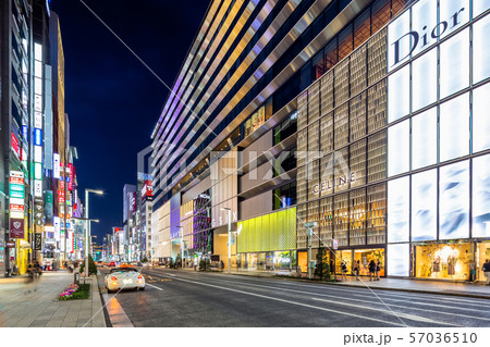 銀座 夜の街並み風景 夜景 (東京都中央区)