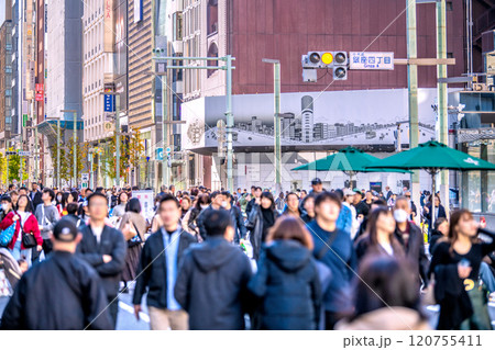 日本の東京都市景観 師走。外国人観光客らで賑わう銀座ホコ天。三愛解体や銀座六丁目プロジェクト…=1日