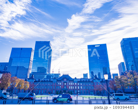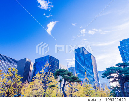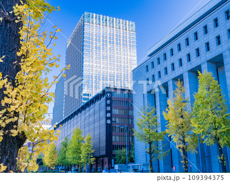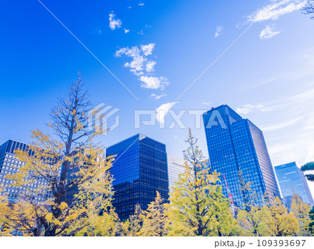 (東京)丸の内・行幸通りのビル群とイチョウ並木
