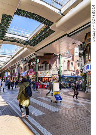 日本の川崎都市景観 川崎駅前の人気商店街「銀柳街」やドン.キホーテなどを望む