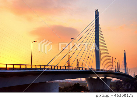 寒川 湘南銀河大橋と富士山の夕景