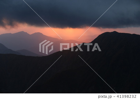 朝日連峰 大朝日岳山頂 避難小屋からの夕陽