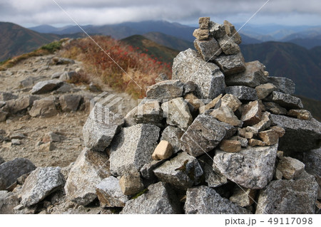 秋の朝日連峰 大朝日岳山頂の風景