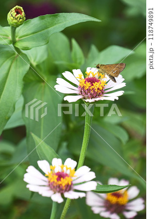 ヒャクニチソウから吸蜜するイチモンジセセリ