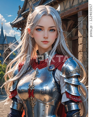 銀髪で金色の大きな瞳を持つ魔法戦士「AI生成画像」