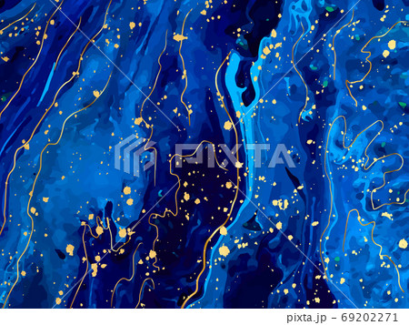 Blue and violet marble and gold abstract background texture. Indigo, blue marbling with natural luxury style lines of marble and gold powder. Vector