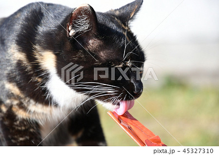 猫・野良猫・外ネコ・ベンチ・食べる・ペースト・錆柄