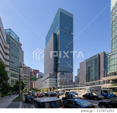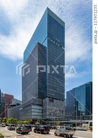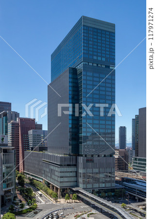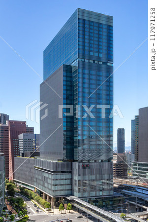 JR大阪駅直結、旧大阪中央郵便局跡地に立つ晴天のJPタワー大阪(KITTE大阪)外観。梅田駅隣接
