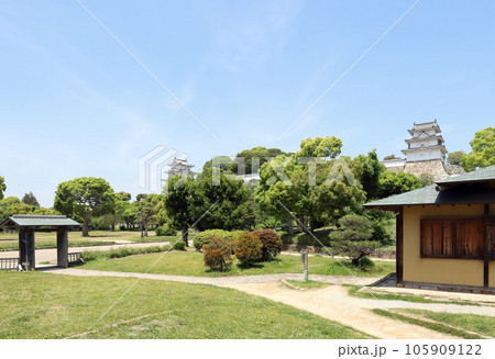 明石市、明石城太鼓門跡と巽櫓、坤櫓の遠景