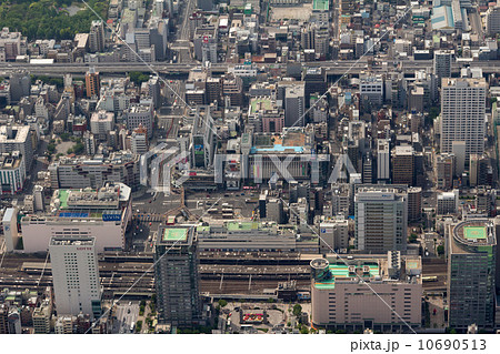 日本の東京都市景観 錦糸町駅前の繫華街などを望む