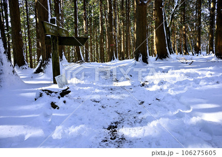 冬の丹沢 雪の栗ノ木洞山頂の森 三等三角点(栗之木道)