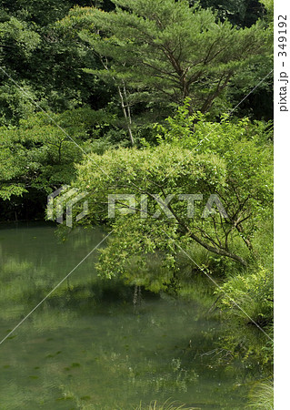 池に覆いかぶさる夏の山(縦)