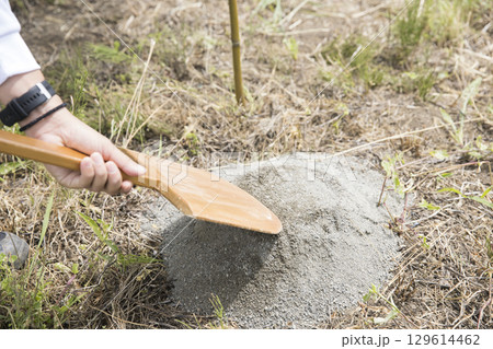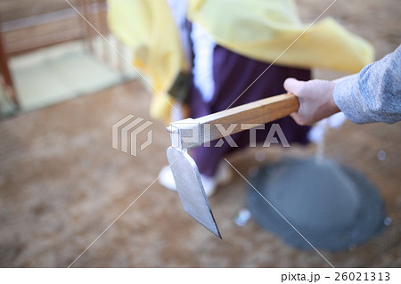 地鎮祭 (安全祈願祭 儀式 イベント 鍬入れ ボディパーツ 人物 男性 神主 仏式 土地 行事)