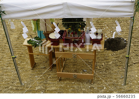 地鎮祭 (安全祈願祭 儀式 イベント 鍬入れ ボディパーツ 人物 男性 神主 仏式 土地 行事)