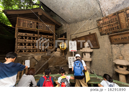 秋の神奈川県鎌倉市の銭洗弁財天(宇賀福神社)の奥宮と参拝者