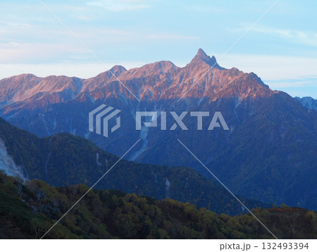 秋の北アルプス・燕岳から望む朝焼けの槍ヶ岳