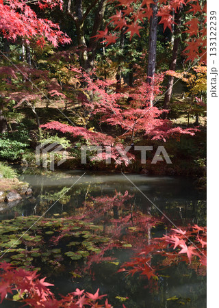 金戒光明寺 方丈北庭 赤いモミジに包まれる鎧之池