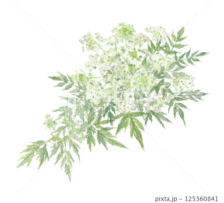 水彩で描いたビャクシ 白芷 ヨロイグサの根