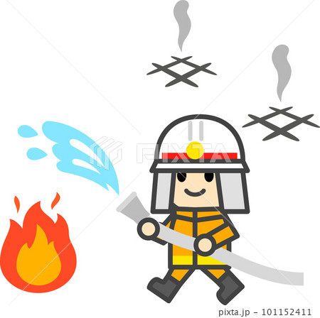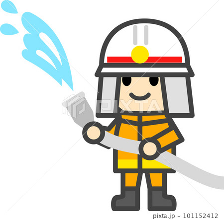 放水する消防士のデフォルメキャラクター