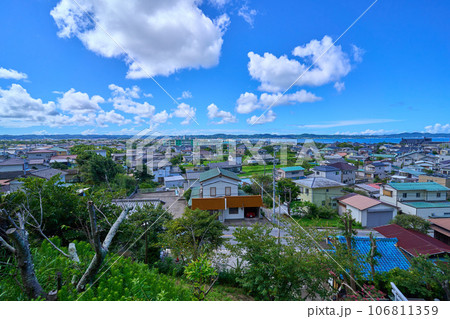 千葉県館山市の那古寺(なごじ)の観音堂からの南側の眺望(館山市那古など)