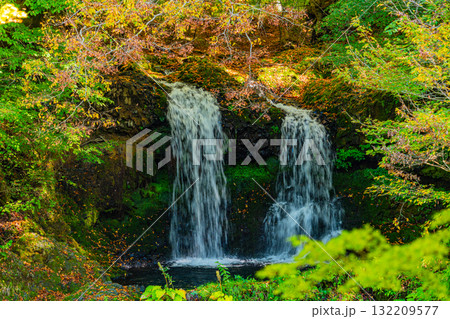 【山梨県富士吉田市】紅葉に包まれた鐘山の滝(かねやまのたき)