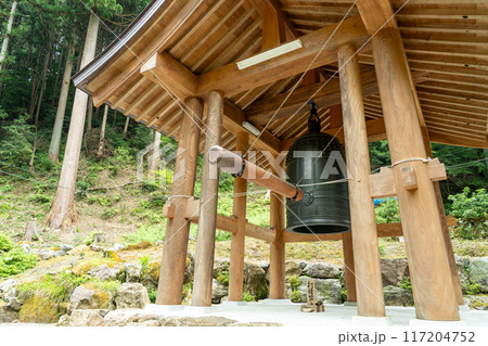 岐阜県揖斐川町 西美濃三十三霊場第一札所の新緑の横蔵寺の鐘楼